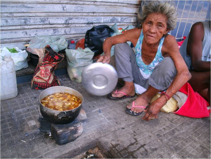 Como podemos observar, o fogão de dona Janete são algumas pedras e tem apenas uma panela em que podemos observar o alimento. A minha iniciativa de relatar a história é que alguém de alguma instituição pública ou privada de saúde movido pelo sentimento solidário e fraterno possa recuperar a saúde da senhora Janete Costa, que vive na calçada do prédio onde foi a Superintendência Estadual do Trabalho, na Travessa do Mercado Central.