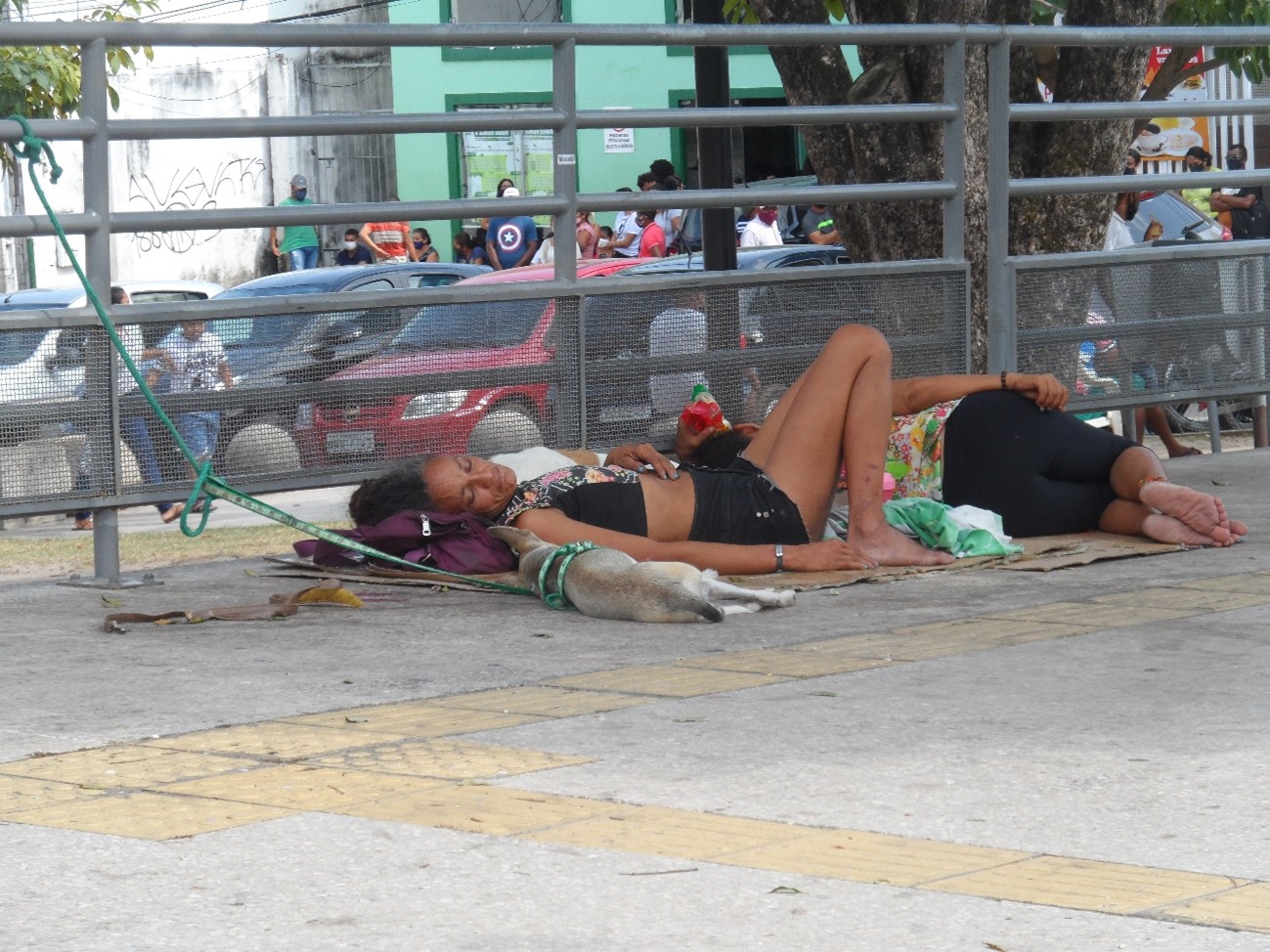 Enquanto a filha dorme de um lado com o cachorro preso a grade de proteção da praça Deodoro, a mãe do outro lado, a exemplo da filha fazem do local um dormitório ao ar livre. O que fica e causa indignação é que a cidade de São Luís, parece não merecer a atenção das autoridades e assim o local vai sendo ocupado drogados e bandidos.