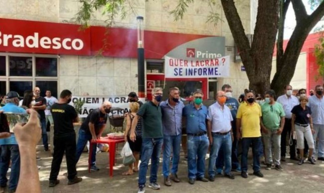 Sindicatos e associações de pecuaristas organizaram churrascos em várias cidades bem na porta das agências do Bradesco.