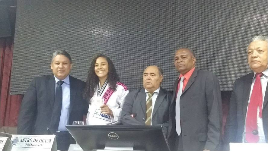 O vereador Cézar Bombeiro apresentou hoje no plenário da Câmara Municipal, a jovem estudante Andressa Raquel Pitombeira, Campeã Sul-Americana Jiu-Jitsu, em competição realizada recentemente em Belém do Pará. O vereador a identificou vendendo água em um semáforo da cidade, juntamente com familiares em busca de conseguir recursos para participar do Campeonato Brasileiro da Confederação Brasileira de Jiu-Jitsu, que será realizado em São Paulo, no período de 28 de abril a 06 de maio. Bastante sensibilizado pelos esforços de uma jovem que tem levado o Maranhão no cenário esportivo nacional e internacional sem a mínima contribuição do poder público.