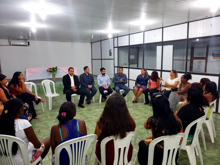 Também participaram do evento, a secretária de Assistência Social e Cidadania, Katma Aguiar; a coordenadora do Centro de Acolhimento da Mulher, Naura Célia Rosa Pires, a coordenadora do CREAS, Emanuelle Sousa Costa Chaves, e a psicóloga Ana Carla Pestana. As profissionais do CREAS explicaram sobre a rede de atendimento à mulher em situação de violência