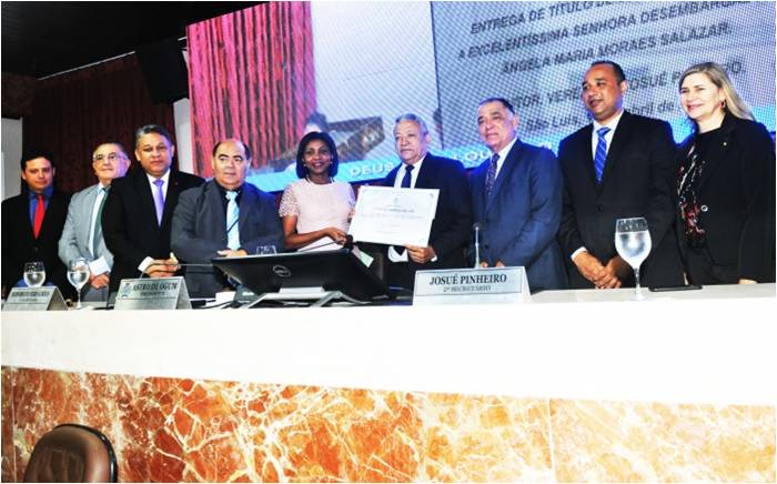 A desembargadora Angela Salazar agradeceu ao vereador Josué Pinheiro, e ao plenário da Câmara Municipal de São Luís, pela aprovação. “Faço esse agradecimento em meu nome pessoal e de minha família. Neste momento, através desta Casa Legislativa, por iniciativa de um de seus edis, se completa o processo de minha adoção por esta cidade, com a outorga do Título de Cidadã de São Luís, legitimando minha cidadania.