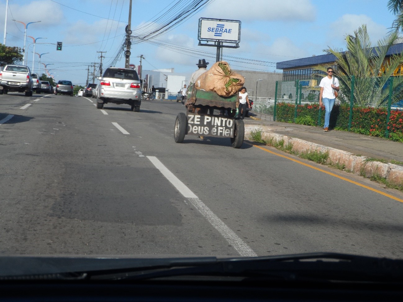 Quase que todos dias, como foi o caso de hoje (09), por volta das 08 horas, uma carroça complicava o trânsito na avenida Carlos Cunha. Embora houvesse guardas de trânsito na área, todos foram indiferentes para o problema, uma vez que as suas preocupações estavam voltadas para aplicação de multas.
