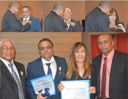 A solenidade de entrega da Medalha Simão Estácio da Silveira, maior comenda da Câmara Municipal de São Luís, se constituiu em uma importante solenidade cívica na sede da Federação das Indústrias do Maranhão. O vereador Cézar Bombeiro, homenageou a atleta Ana Paula Rodrigues Belo, da seleção brasileira de handebol, que tem levado além fronteiras, o nome de São Luís, do Maranhão e do bairro da Liberdade; o jornalista Genival da Conceição Abreu Fonseca, profissional competente e de grande destaque na mídia de nossa cidade e a gestora pública Leopoldina Amélia Barros, com importantes serviços prestados à cidade de São Luís e ao Maranhão, especialmente quando Subsecretaria do Sistema Penitenciário. Severino Bispo Rodrigues, pai da atleta Ana Paula recebeu a comenda da filha que se encontra no exterior, Genival Abreu Fonseca e Leopoldina Barros ao lado do vereador Cézar Bombeiro, após o recebimento da maior comenda do Poder Legislativo Municipal. Na foto abaixo estão Johnatas Galvão Belo, marido de Ana Paula; a genitora dela Galdina Rodrigues, a irmã Roberta Rodrigues Neta, o pai Severino Bispo Rodrigues e o jornalista Genival Abreu Fonseca com o vereador Cézar Bombeiro.