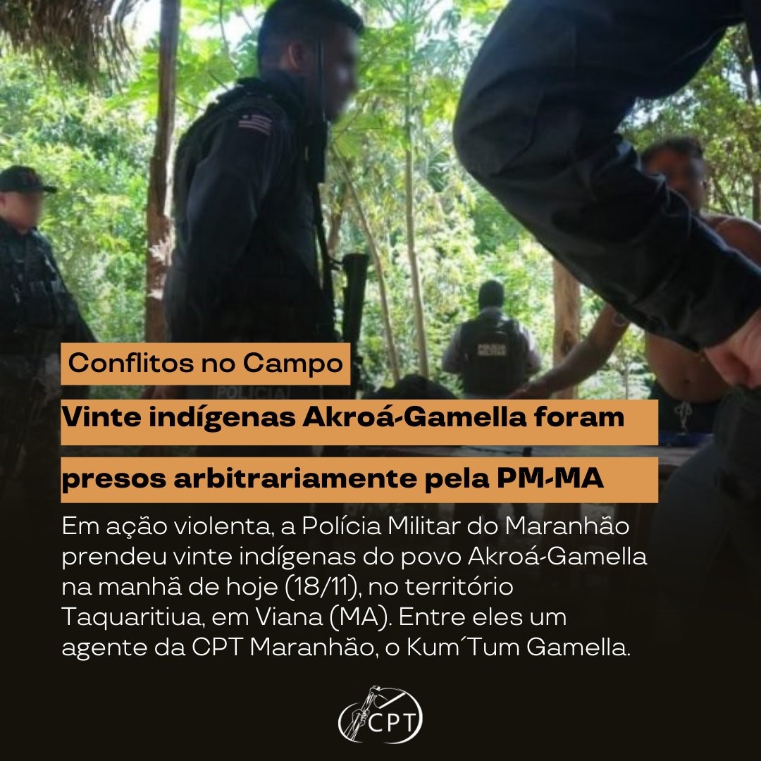 A Comissão Pastoral da Terra e o Conselho Indigenista Missionário continuam cobrando das autoridades federais providências sobre a invasão de policiais militares sem autorização e nem mandado judicial a comunidade indígena Cajueiro dos Akróas Gamella. Além de terem torturado inúmeros índios, prenderam e algemaram vários deles e conduziram para a Delegacia da Polícia Civil de Viana, onde foram tratados como bandidos e tiveram as suas cabeças raspadas.