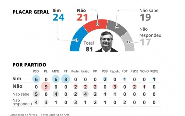 Flávio Dino precisa de 41 votos para ter o crivo do plenário do Senado Federal e assim galgar o posto de ministro do Supremo Tribunal Federal (STF). Por outro lado, o jornal O Globo fez um levantamento o sentido de ver como está a cotação de Flavio Dino entre os senadores.