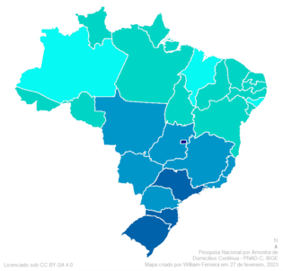 O Brasil é um país grande e diverso, com diferenças socioeconômicas significativas entre as diferentes regiões. Segundo a PNAD-C, no ano de 2022, a unidade federativa com a maior renda média do Brasil foi o Distrito Federal com R$ 2.913, seguido de São Paulo (R$ 2.148). O estado do Maranhão teve a menor renda (R$ 814), seguido de Alagoas (R$ 935). A região centro-oeste apresenta o maior rendimento regional, de R$ 2.011 e a região nordeste o menor valor, R$ 1.053.