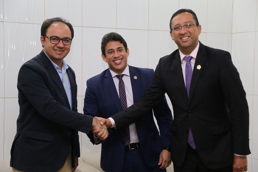 O presidente Osmar Filho ladeado pelo diretor Francisco Teixeira e o vereador Ricardo Diniz