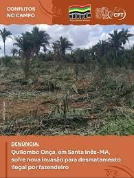 A Comissão Pastoral da Terra (Regional Maranhão) e o Movimento Quilombola do Maranhão (MOQUIBOM) vêm manifestar publicamente seu repúdio à postura da juíza titular da Vara Agrária da Comarca de São Luís, Dra. Luzia Madeiro Neponucena, em relação às comunidades quilombolas do Maranhão. Em recente ida ao município de Santa Inês, em 14 de novembro de 2025, a juíza realizou uma reunião no quilombo Onça pela manhã e uma palestra no IFMA à tarde. Em ambas ocasiões a magistrada se dirigiu aos quilombolas de forma autoritária, desrespeitosa e racista.