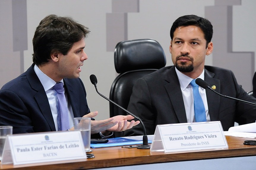 O presidente do INSS, Renato Vieira (à esq.), afirmou à CTFC, presidida pelo senador Rodrigo Cunha, que processos administrativos apuram responsabilidades e conscientização da população leva a denúncias