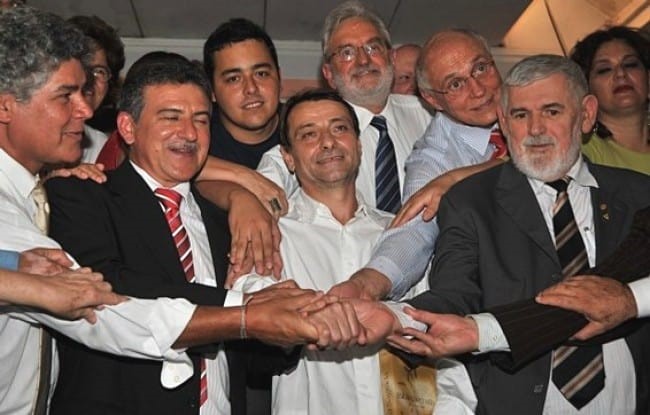 A foto registra o tratamento de herói que era dado ao terrorista italiano Cesare Battisti, observando-se claramente o apoio irrestrito que recebia do Partido dos Trabalhadores.
