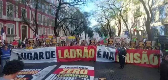 A manhã desta terça-feira (25) foi marcada com protestos contra o presidente Lula (PT), em Portugal. Manifestantes e parlamentares se reuniram em frente ao Parlamento Português e gritavam frases como “Lula ladrão seu lugar é na prisão”.