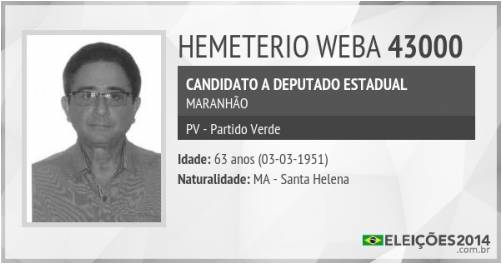 O Tribunal Superior Eleitoral (TSE) acolheu recurso do Ministério Público Eleitoral (MPE) e reformou decisão do Tribunal Regional Eleitoral do Maranhão, indeferindo o registro de candidatura de HemetérioWeba Filho ao cargo de deputado estadual nas Eleições de 2014.