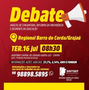 O SINTSEP convida todos os servidores públicos estaduais do município de Grajaú e região para participar de uma reunião, na próxima terça-feira (16), que tratará de temas importantes, como Reforma da Previdência e informações sobre os processos que o sindicato tem na Justiça, a exemplo dos 21,7%, URV e 5,14%.